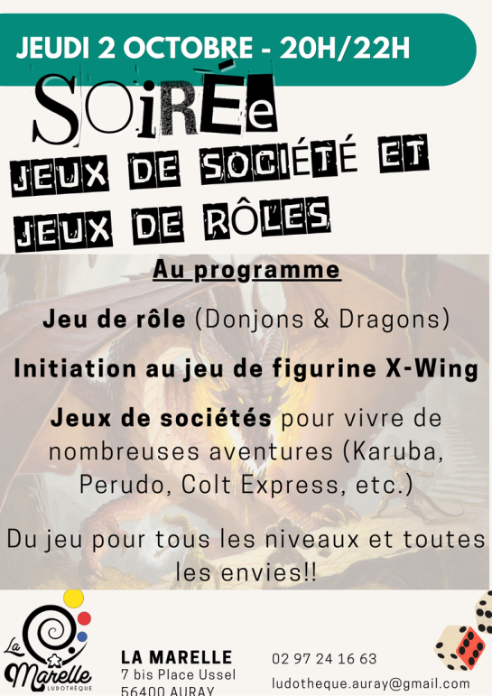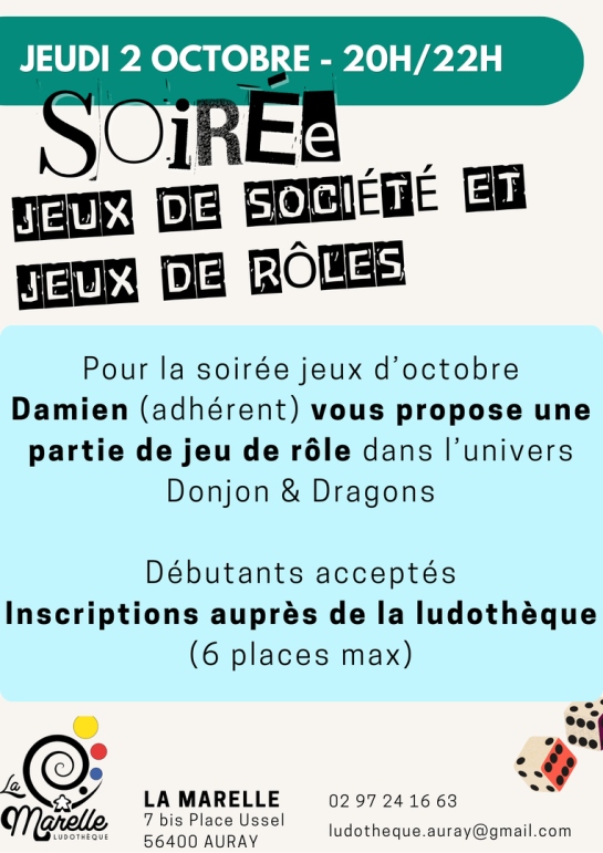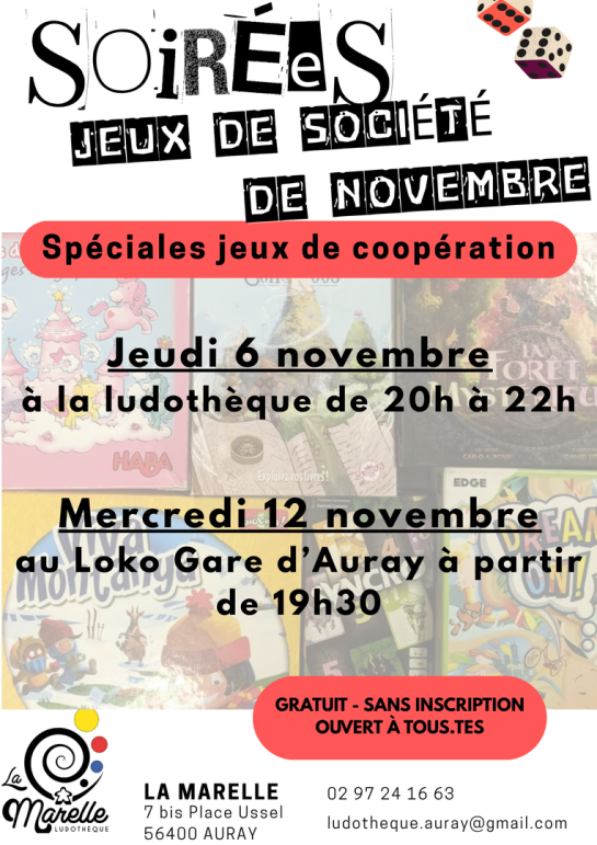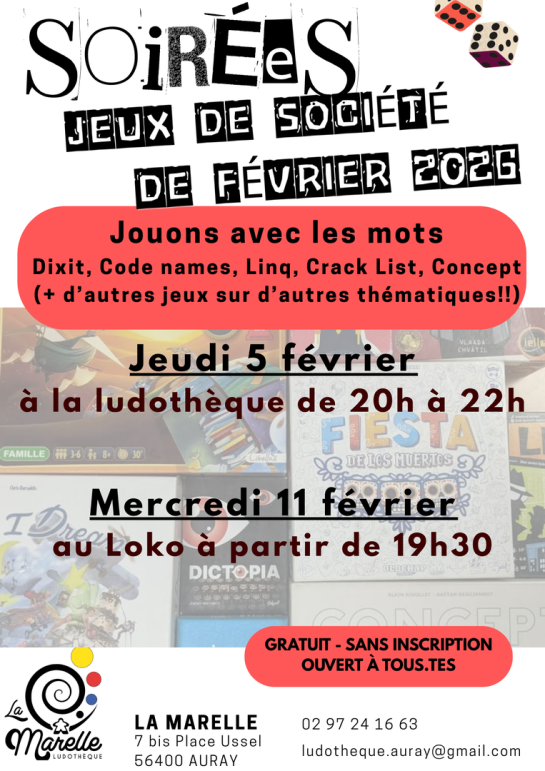 Jeudi :16h00 -19h00 (et tous les 1er jeudis du mois soirée jeux de 20h à 22h)