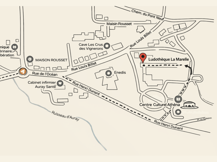 L'entrée ce fait derrière l'ancienne piscine. En face du centre culturel Athéna